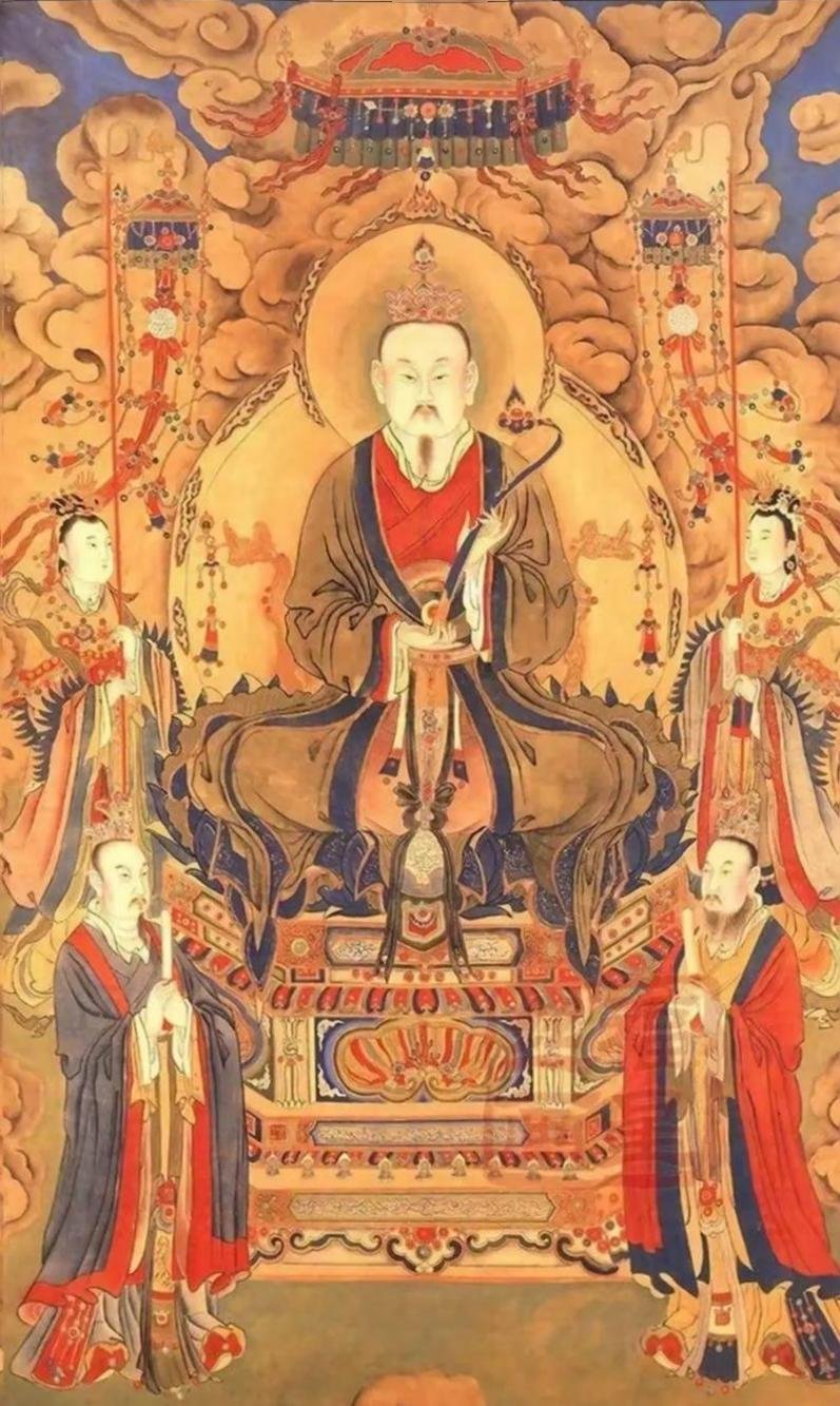 Lingbao Tianzun is typically portrayed as a majestic, middle-aged deity, often holding a Ruyi scepter (a symbol of authority and the fulfillment of wishes) or a Lingbao Pearl. He resides in the “Upper Pure Realm” (Shangqing Jing). His iconography is less defined than that of Taishang Laojun, reflecting his more abstract role, but he is always shown with the regalia of a celestial sovereign.